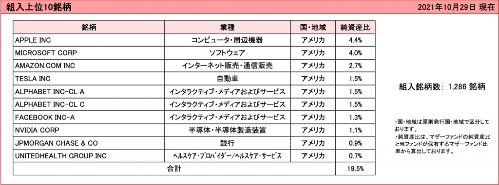 組入上位10銘柄を見ても、他の先進国株式や米国株式のファンドと代わり映えしません。