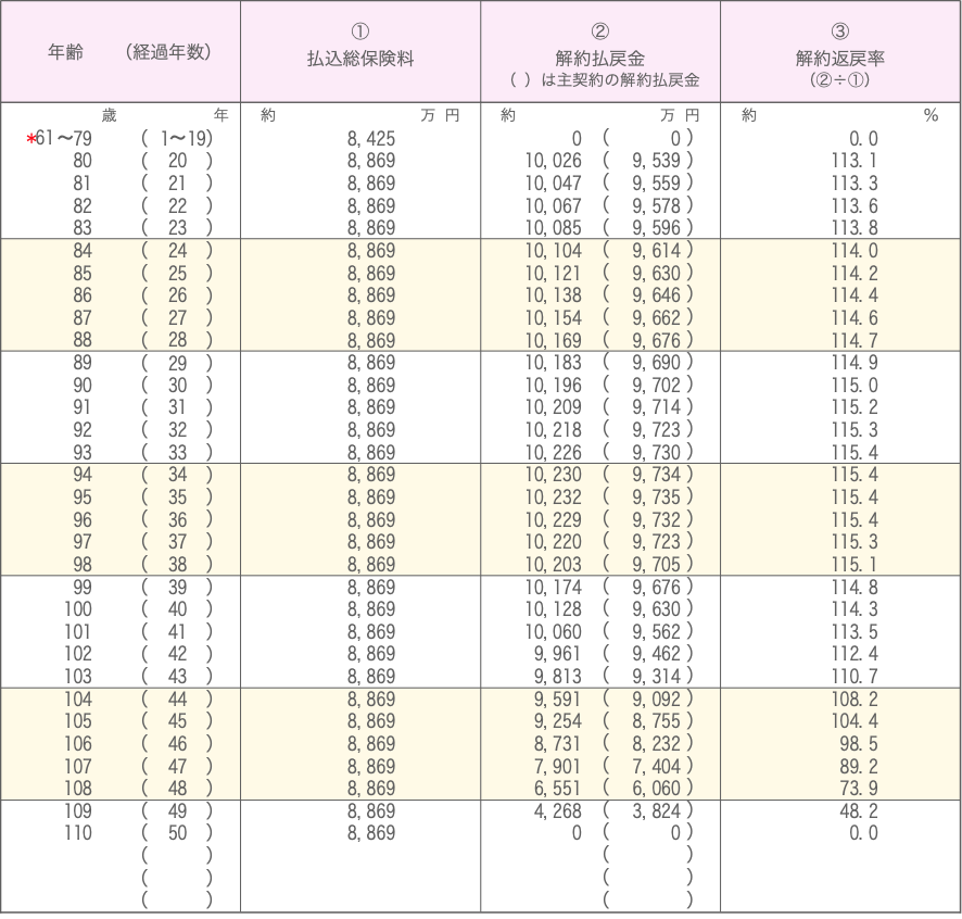 また、払込期間中の解約返戻金はございませんが払込終了後に解約返戻金が立ち上がります。