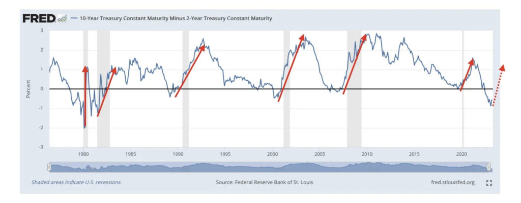 要は、逆イールドが解消していく過程で景気後退に陥っているということですね。
