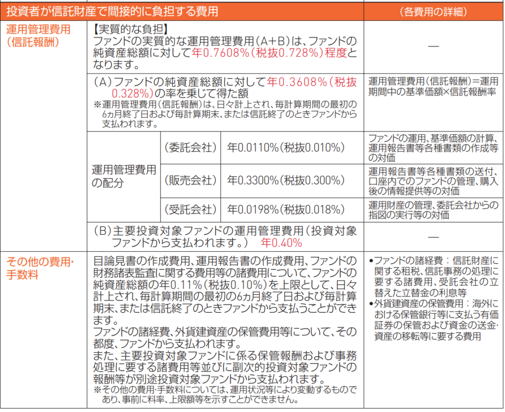 毎年の管理費用は年0.7608%、その他手数料もかかります。
