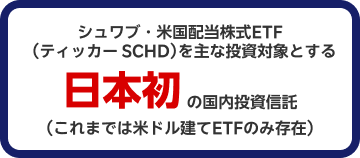 ・「シュワブ米国配当株式ETF(SCHD)」を主要投資対象とし、配当収益や中長期的な値上がり益の獲得を目指す。