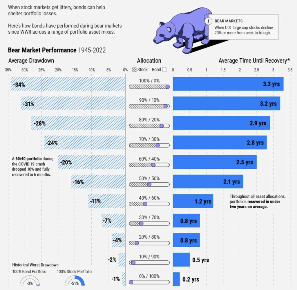 例えば、1945〜2022年のベアマーケットにおけるパフォーマンスを見てみると、