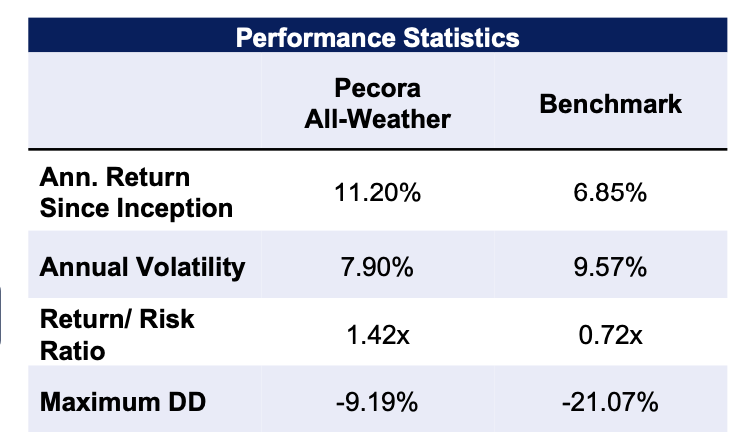 Pecora Capital’s All-Weather Multi-Strategy Portfolio は最大ドローダウンも−9.19%