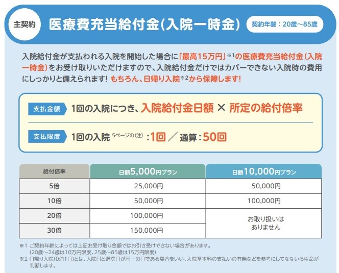 医療費充当給付金:入院給付金の10倍/なし のどちらかを選択