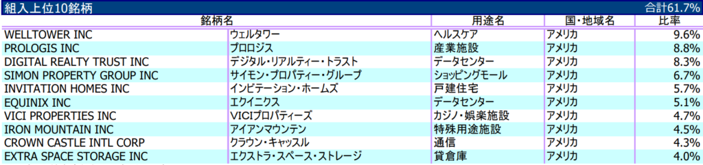 組み入れ上位のWELLTOWERを調べてみると、高齢者住宅事業や介護施設が投資先だそうです。これなら想像しやすいのではないでしょうか。