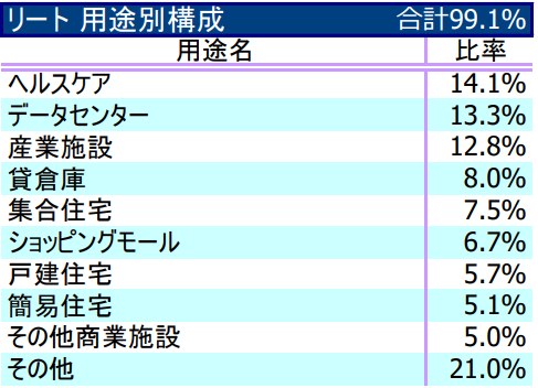 用途別でデータセンターはよく見ますが、ヘルスケアが上位に組み入れされているリートファンドは珍しいですね。