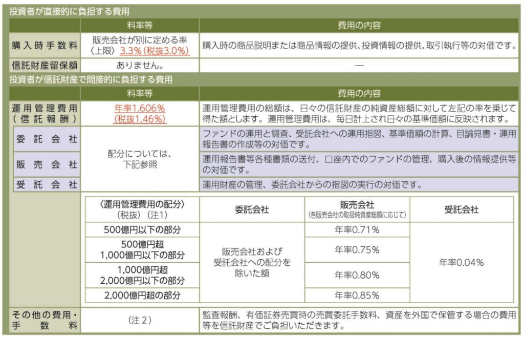 購入手数料は3.3%、毎年の管理費用は1.606%、その他手数料もかかります。