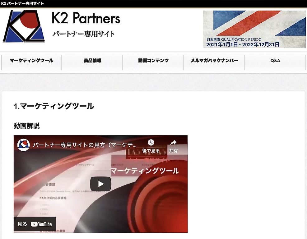 ただ、いくら既存のビジネスと親和性が高いとはいえ、これまで海外・オフショア投資に携わったことがなかった保険屋さんがいきなりパートナー活動を始めて軌道に乗る、なんてことは当然無く、そのために私達は初期研修や勉強会をやったり、クライアント候補者との商談の場に立ち合ったり等と、様々な形でパートナーさんをバックアップしているわけで、そんなサポートツールの中に『パートナー専用サイト』というのがあります。パートナー登録をいただいた方のみにログイン情報を付与するのですが、今回は特別に少しだけ中身をご紹介。