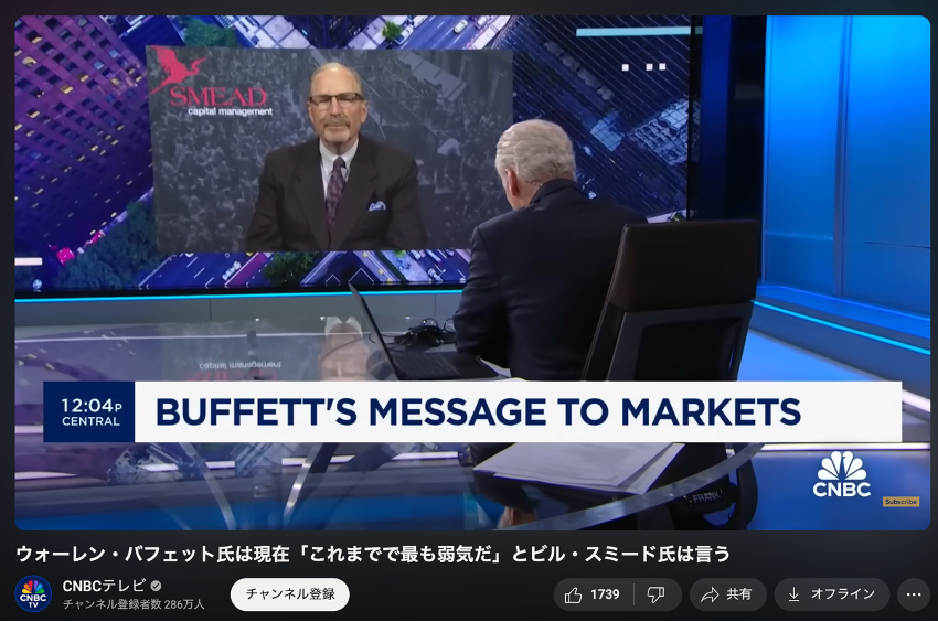 スミード・キャピタル・マネジメントの最高投資責任者であるビル・スミード氏はCNBCに出演し、ウォーレン・バフェットは現在「これまでで最も弱気だ」とバークシャー・ハサウェイの年次総会に対する感想を語っておりました。