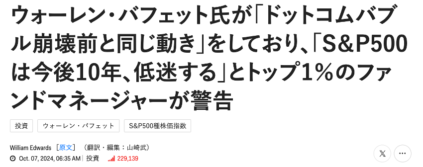 その一方で、バフェット氏が下落リスクに備えるタイミングにも注目しており、バフェット氏がアップルやバンク・オブ・アメリカなどの株式を大幅に売却し続けている今は、まさにそのケースと考えているとのこと。