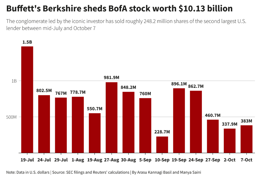 バンク・オブ・アメリカの株式については、7月中旬以降、売却し続けており、14回目の売却で総売上高は約101億3,000万ドル相当となったようです。