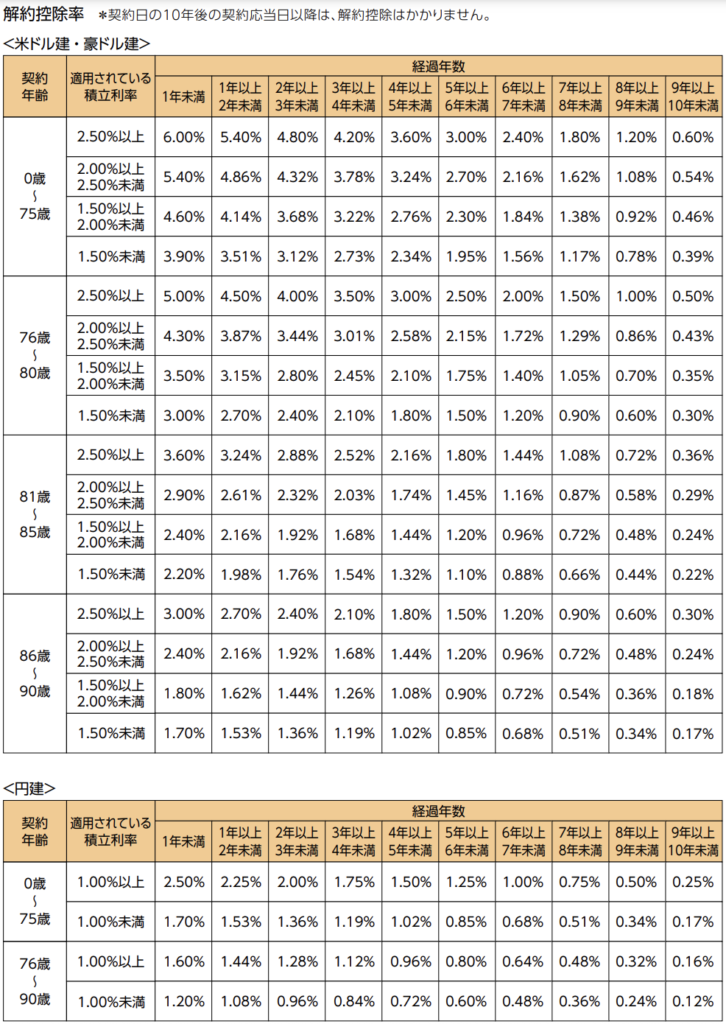 ・契約日から10年以内に解約したら経過年数に応じて解約返戻金は減りますよ。