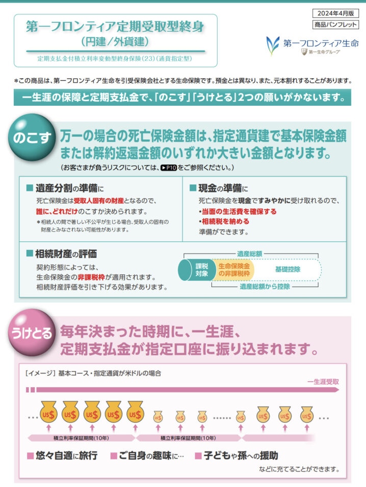 商品名:第一フロンティア定期受取型終身(円建/外貨建)