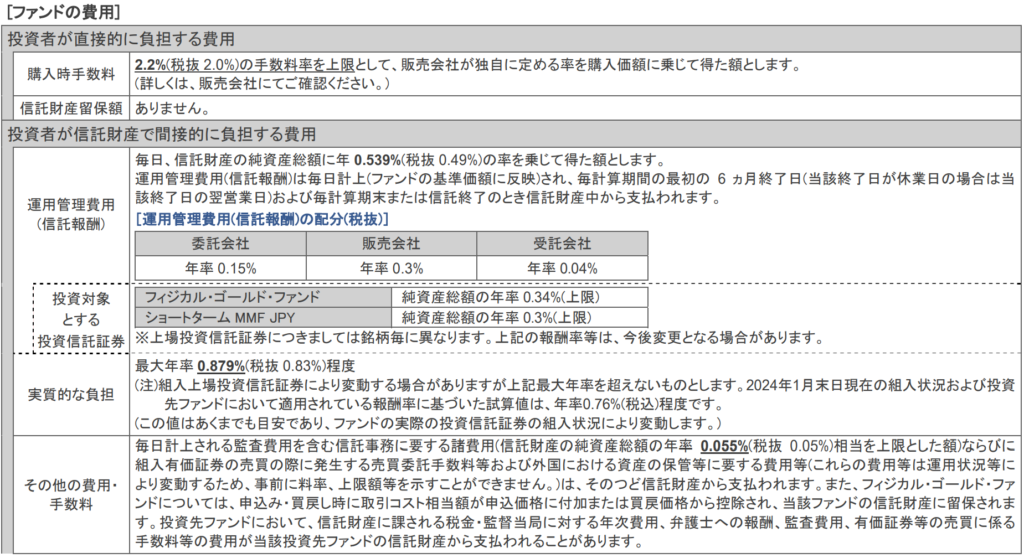 購入手数料は2.2%、毎年の管理費用は年0.879%、その他手数料もかかります。