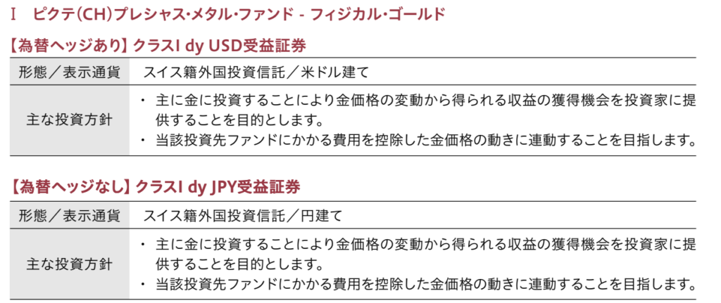 • ピクテ・ジャパン「ピクテ・ゴールド」は現物の金に投資するファンド