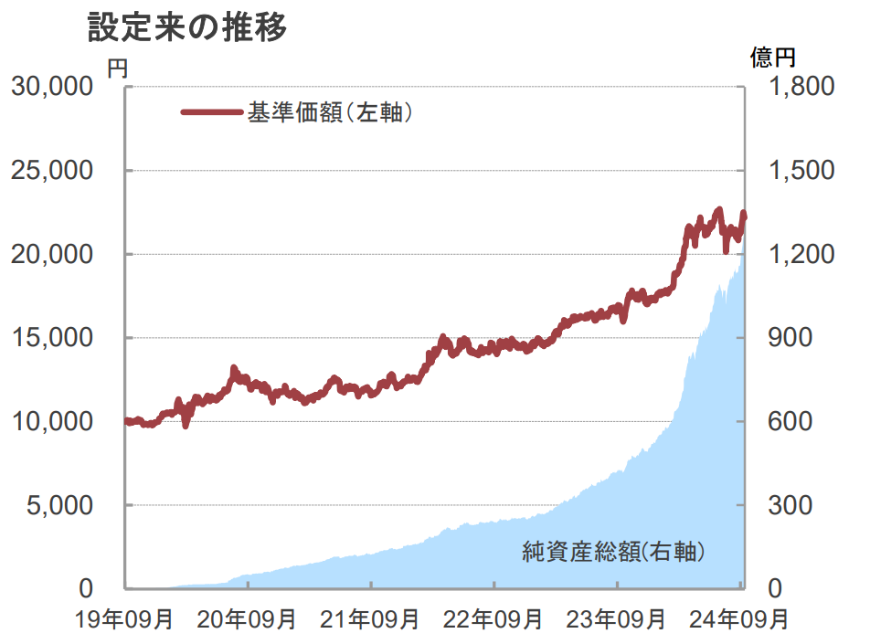 大きな下落もなくじわじわ基準価額が上がっていて、特に直近は上昇率がいいですね。購入手数料は気になりますが、その点を加味しても充分なパフォーマンスかと思います。