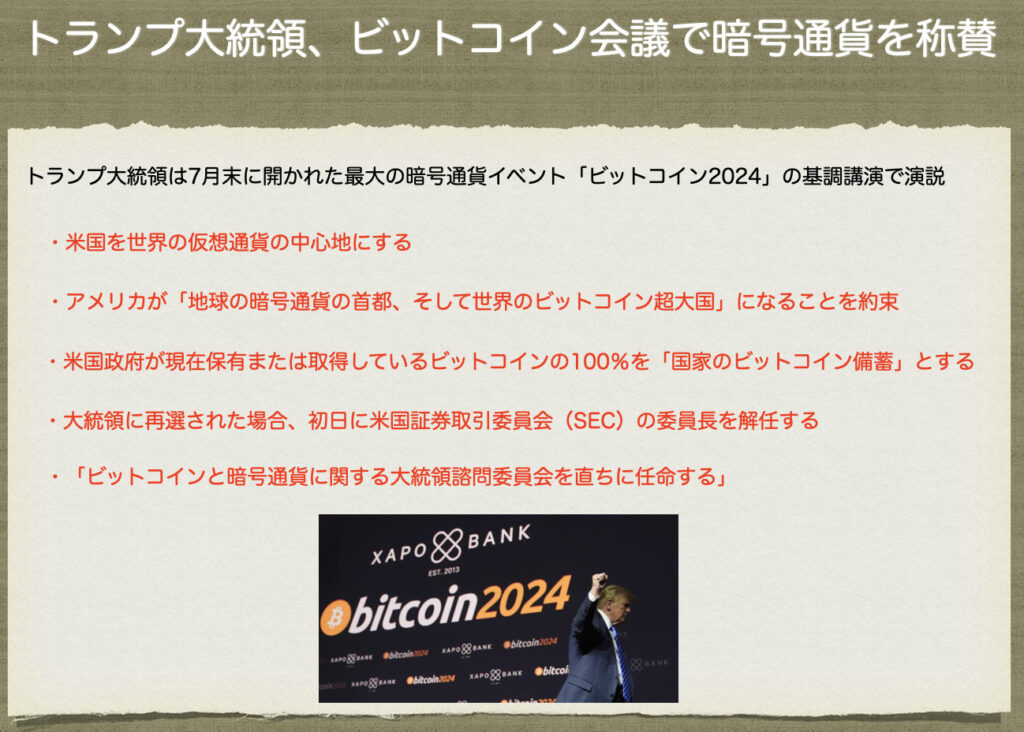 - トランプ大統領の再選はビットコイン上昇にとって追い風