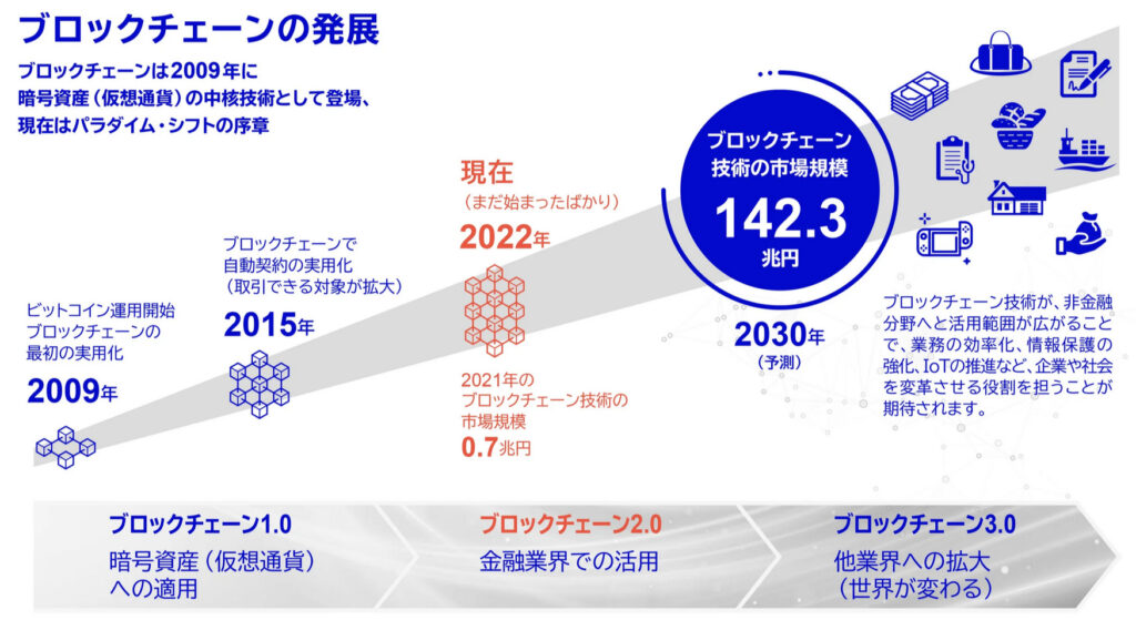 Web3やメタバースと呼ばれる次世代のインターネットや仮想空間において、ブロックチェーン技術は中心的な役割を果たしておりますし、これらの関連プロジェクトや企業などへも投資しておくことでも、将来、大きなリターンを得ることが期待できます。