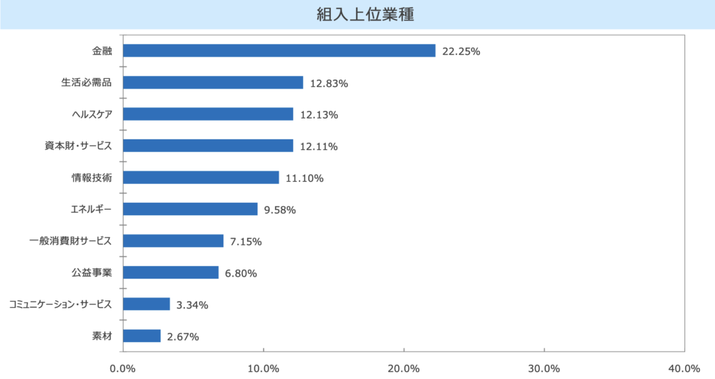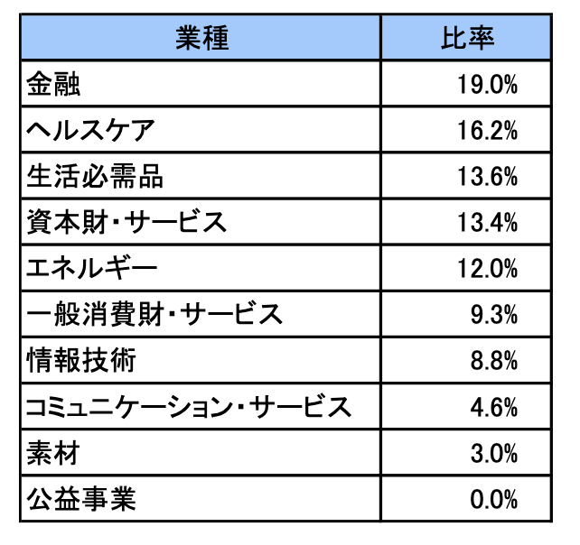現在の構成セクター比率では金融やヘルスケアセクター比率が多いようです。