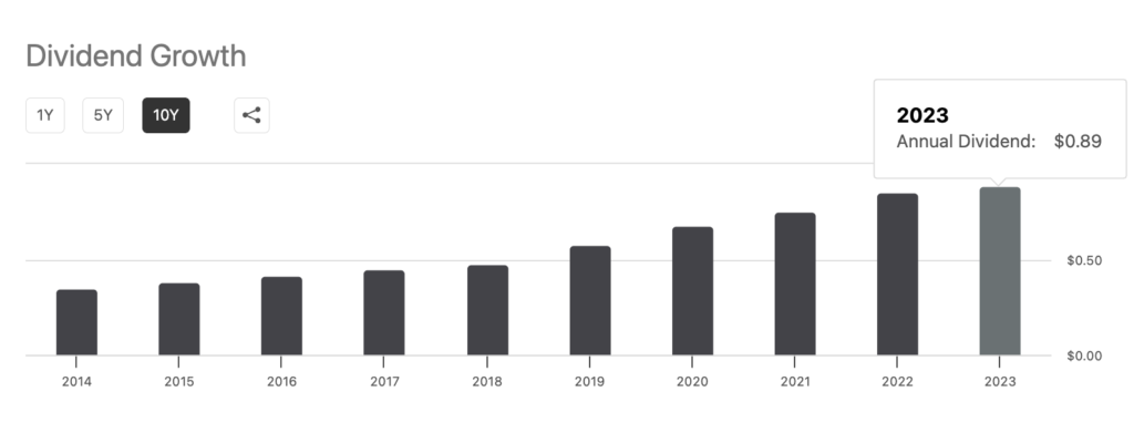 こちらが「SCHD」の1株あたりの分配金推移
