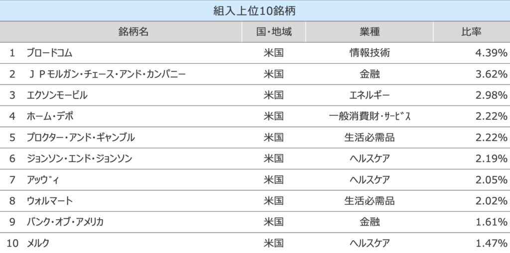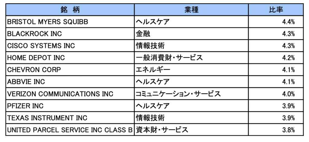 また、「SBI VYM」は上位10銘柄で全体の約25%の割合を占めております。