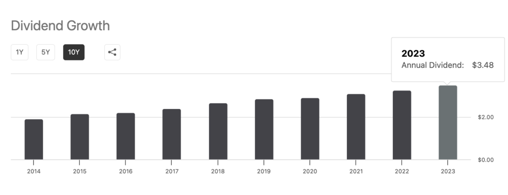 「SCHD」の場合、10年間の分配成長率は11.13%/年