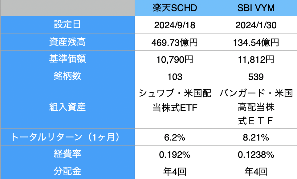 「楽天SCHD」 vs 「SBI VYM」