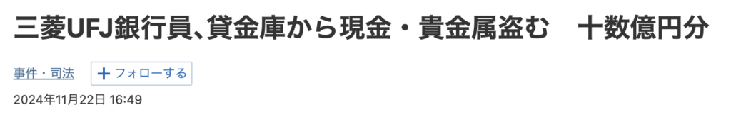 盗難リスクといえば、銀行の貸金庫を利用していても行員に盗まれることがありましたね。