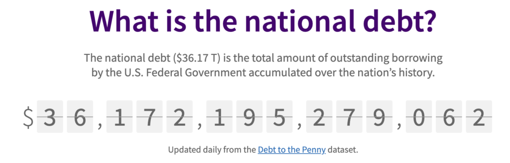 米国政府の公式ウェブサイトによると、現在の米国の公的債務は36兆ドルを超えており、