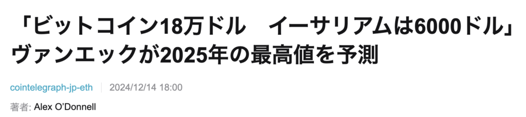 そして、最近も米大手資産管理会社ヴァンエックが、2025年末までにビットコイン価格が18万ドルに達するという予測を発表しました。