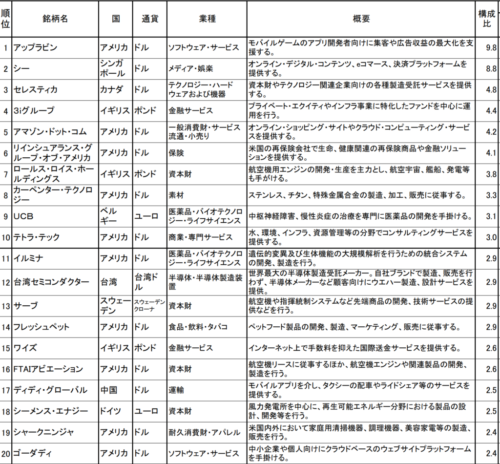 投資先、組み入れ銘柄