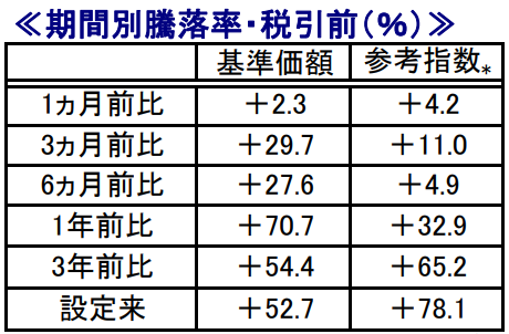 - 直近1年で+70.7%、3年で+54.4%