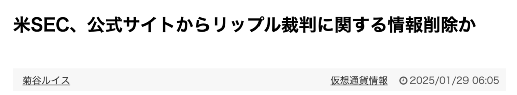 なお、米証券取引委員会(SEC)が公式サイトからリップル社との訴訟関連情報が削除されたと話題になっているようです。
