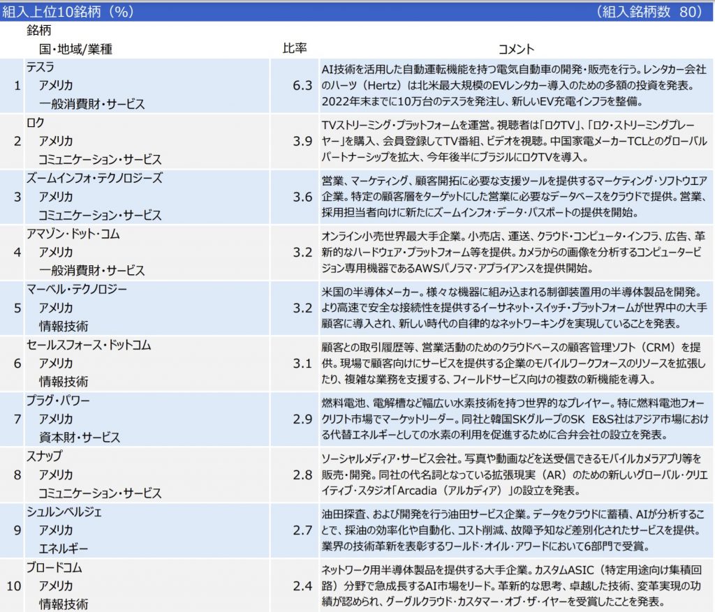 直近ではオミクロンショックの影響を受けて弱含む展開になっていますが、コロナショックから元本割れせず回復している部分を見てもファンドマネージャーの手腕が光ります。AIを活用している会社は今後も拡大していくと思われます。継続して投資していきましょう。