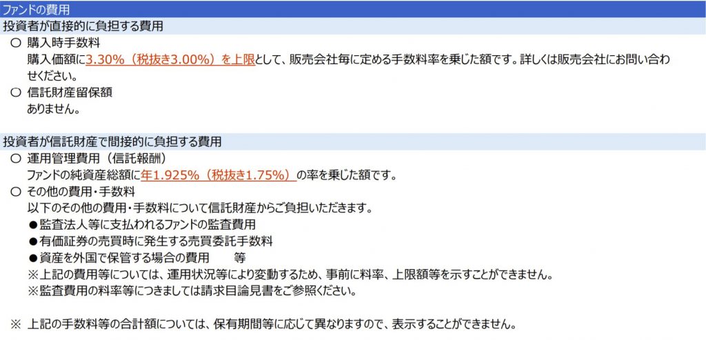グローバルAIファンドを購入する際には最大3.3%の購入手数料、毎年の信託報酬も1.925%かかります。