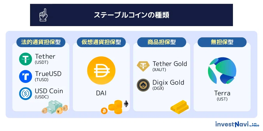 ステーブルコインは、価格の変動を抑えた安定性があるということですね。