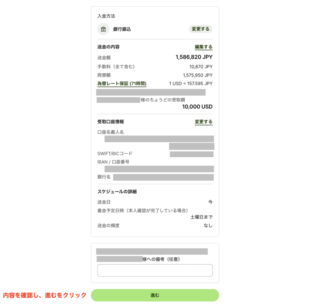 「送金する」をクリックします。
