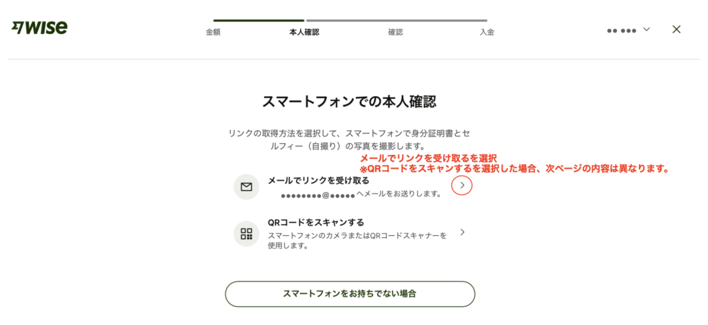 「メールでリンクを受け取る」を選択します。