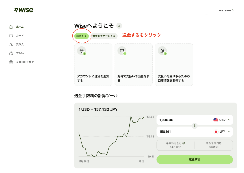それでは実際にWISEの海外送金手順を説明します。