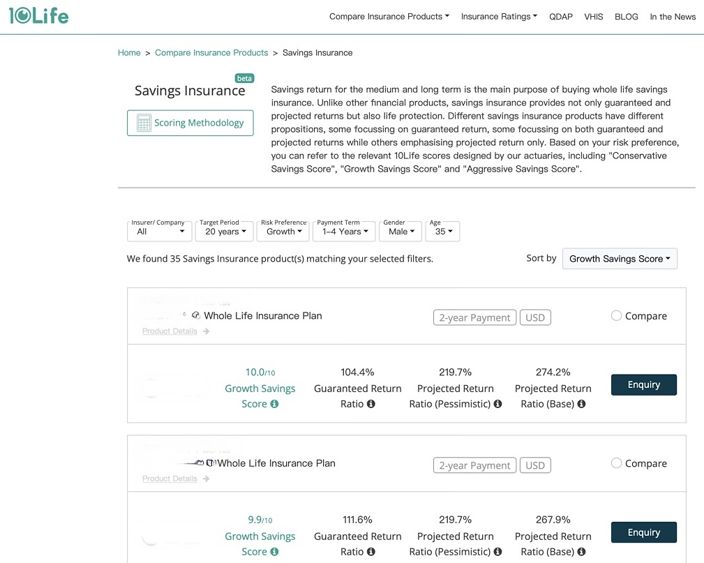 「保険見直し」に話を戻します。(これは全くの私見ですが)そもそも商品設計が比較的シンプルで、提案書も業界全体で使用するスタンダードなデザインがあるため異なる保険会社の商品であっても比較検討がし易く、加入を検討している人は大概複数の会社から相見積を取っていて、十分に調査した上で契約書にサインをするため、後から「見直す」という需要が低いということもあるのかも知れません。私も自分が取り扱っていない商品の資料や提案書を見せられて意見を求められるという経験が過去に何度もありますが、商品を理解するのに難儀したことはありません。同じカテゴリーの商品であれば、提供する保険会社こそ違えども商品自体は大同小異なんですよね。なので、保険商品比較サイトもデザインがかなりシンプル、且つ明瞭。「利回りランキング」とか、なかなか凄いことになってます…。因みに医療保険の場合、治療方法ではなく疾病の種類によって保険金が下りるか否かが決まる商品の方が一般的であるため、新しい治療法が開発される都度、それに対応した新しい保険商品や特約が出る、といったことが香港では少ないということも、見直し需要が低いという理由の一つかも知れません。