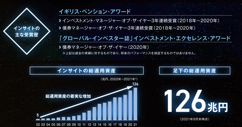 野村證券の新商品と言っても野村が運用しているわけではなく、海外のファンド会社「インサイト」を野村が国内向けに組成したファンドとなります。そのインサイト社はこれまで債券で高い実績があります。