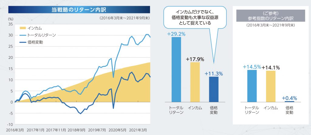 結果、このようにインカムゲインだけでなくキャピタルゲインがあることで、トータルで高いリターンとなります。