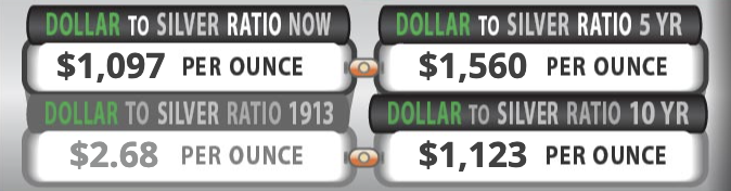ただ、「US Debt Clock」に記載されている「DOLLAR TO SILVER RATIO」は、通常の市場価格(スポット価格)とは異なり、実質的な銀の価値を示していますが、現在の価値は1,097ドル/オンスとなってますので、参考にしてください。