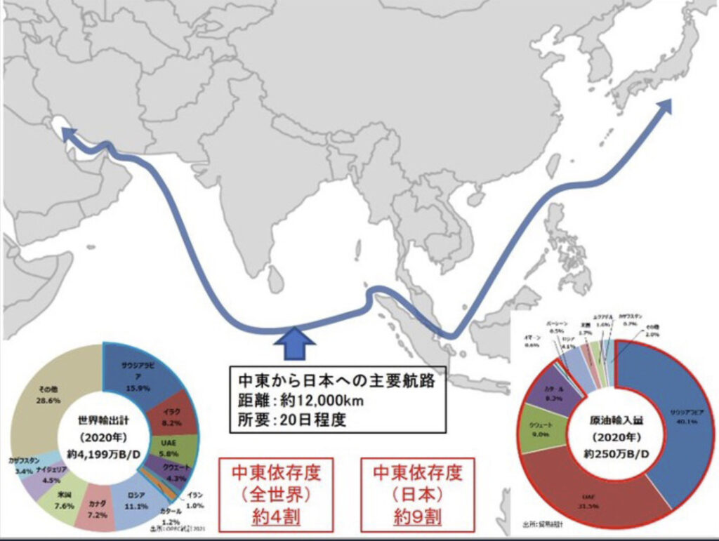 日本のエネルギー輸送ルートは、南シナ海やホルムズ海峡といった海上輸送経路に依存しています。これらのシーレーンが封鎖された場合、日本へのエネルギー供給は途絶し、深刻なエネルギー危機に直面します。