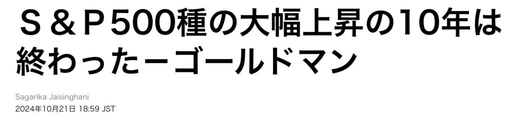 また、ゴールドマンのストラテジストの分析でも、S&P500の今後10年の年率リターンは3%にとどまる見込みとされております。