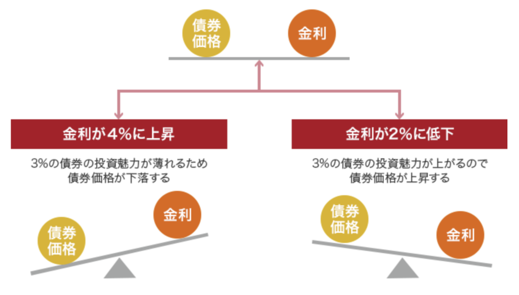 政府は国債を通じて財政支出を拡大できる一方、市場では「国の信用力」や「将来の金利動向」を見越して利回りが決まる。ここで、金利と長期国債の価格は逆相関関係にある。すなわち、金利が上昇すれば既発債の価格は下がり、金利が下がれば価格は上がる。