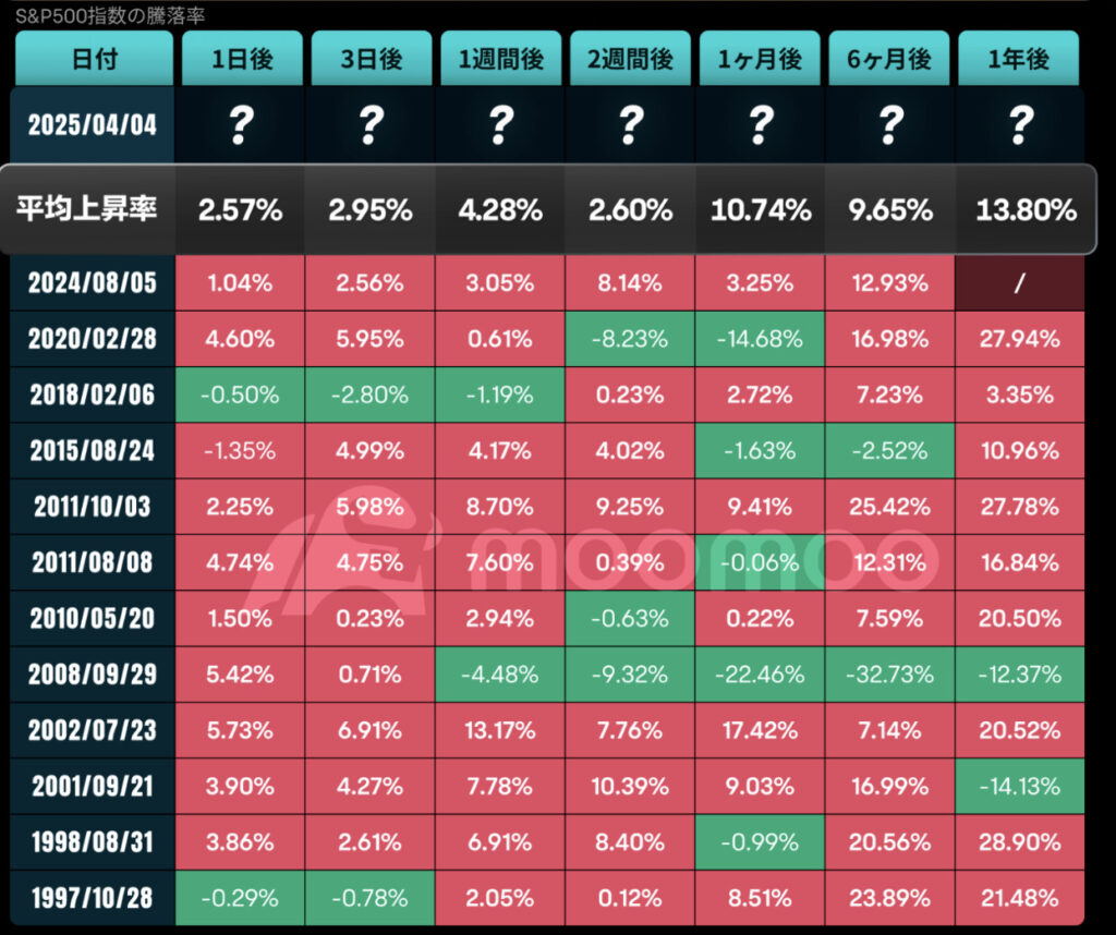 過去のデータを見ても、VIXが急上昇した後、株式市場は一定の回復を見せる傾向があります。