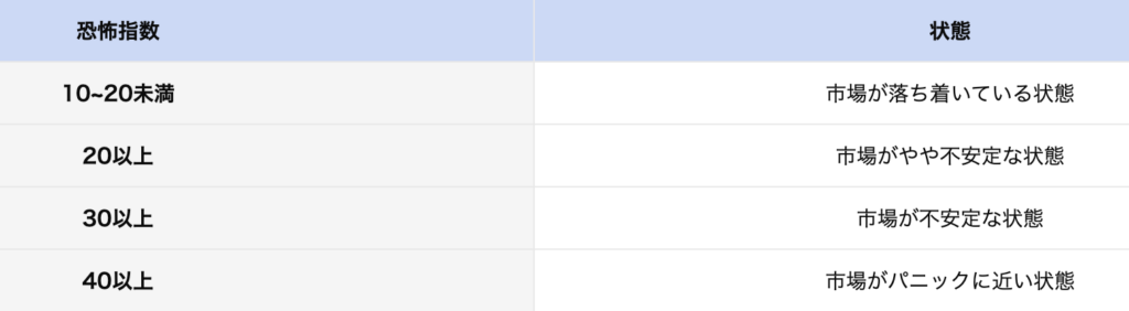 市場のパニックや混乱を数字で可視化できるため、危機的な局面を把握するための有力な指標となっています。