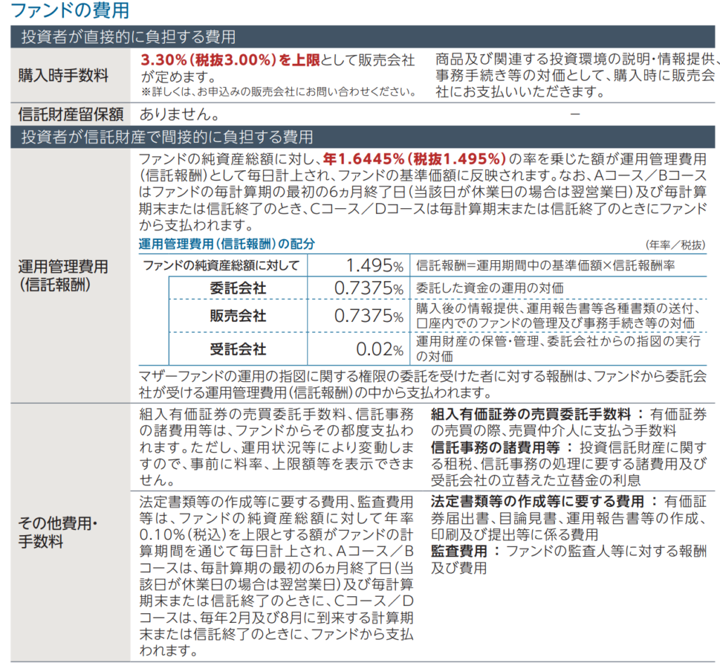 購入手数料は3.3%、毎年の管理費用は1.6445%程度、その他手数料もかかります。