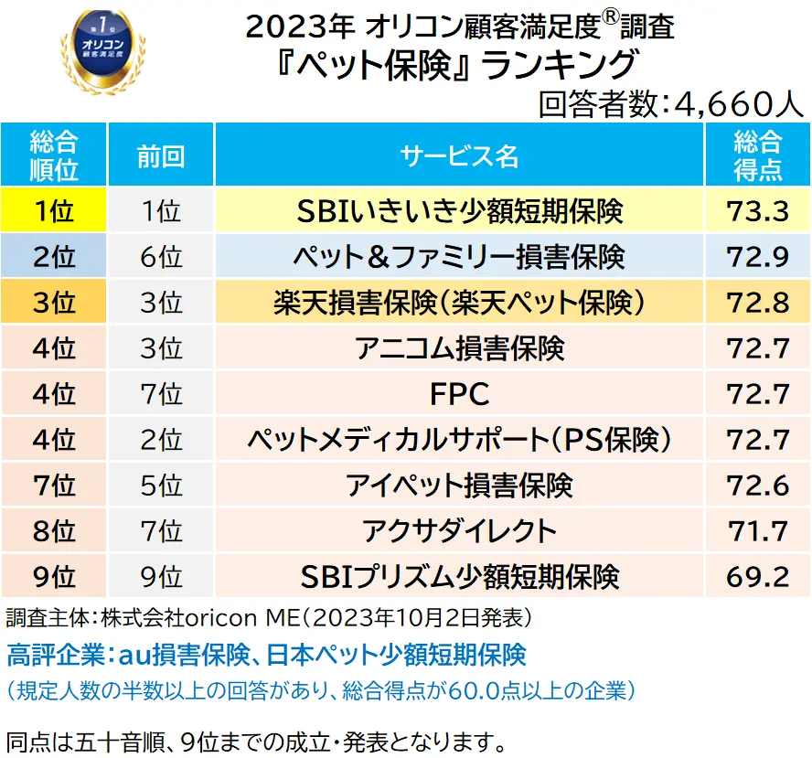 • SBIいきいき少短、アニコム損保、アイペット損保などが主要プレイヤー